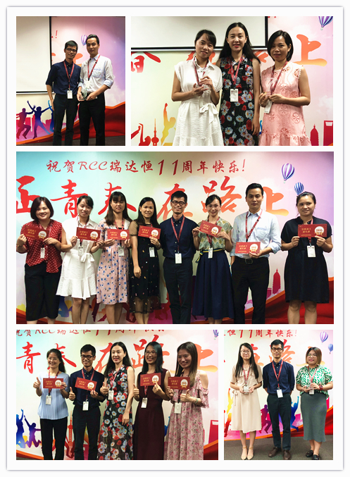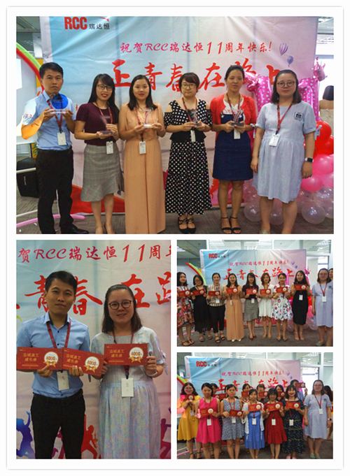 一段由RCC制作的十一周年慶視頻拉開(kāi)了慶典活動(dòng)的序幕。視頻中,敘寫(xiě)了這一年來(lái)公司取得的驕人成績(jī)與開(kāi)展的活動(dòng)、PK戰(zhàn)中RCC員工們熱血的場(chǎng)面、客戶對(duì)RCC信息的評(píng)價(jià)片段、CEO在視頻中的致辭等內(nèi)容,震撼著每一名RCC人。RCC在2017——2018年所取得的諸多創(chuàng)新和進(jìn)步、輝煌的成就和永不止步的發(fā)展態(tài)度,讓在場(chǎng)的每一名員工都倍感光榮和自豪。一個(gè)個(gè)輕松活潑的環(huán)節(jié)讓整個(gè)活動(dòng)現(xiàn)場(chǎng)其樂(lè)融融,充分展現(xiàn)了RCC大家庭的團(tuán)結(jié)與溫暖,把氣氛推向了高潮。公司領(lǐng)導(dǎo)還為眾多在RCC工作三年或以上的員工頒發(fā)了“忠誠(chéng)員工特殊獎(jiǎng)”,本次的頒獎(jiǎng)把原先贈(zèng)予金器的形式改為發(fā)放面額1000元到4000元的“成長(zhǎng)券”形式,專門(mén)用于購(gòu)買(mǎi)圖書(shū)、線上課程、健身卡,幫助老員工提升職場(chǎng)專業(yè)技能和能力、鼓勵(lì)他們積極鍛煉,保持健康的體魄。新的獎(jiǎng)品形式不僅代表著公司感謝忠誠(chéng)員工與公司共成長(zhǎng)的情誼,還表明公司對(duì)員工全面發(fā)展的高度重視,公司也將一如既往地為更多有能力、有思想的員工提供更為廣闊的發(fā)展空間。最后,在團(tuán)結(jié)與溫暖氣氛中,在全體RCC員工對(duì)公司的祝福里,公司十一周年慶典活動(dòng)落下帷幕。